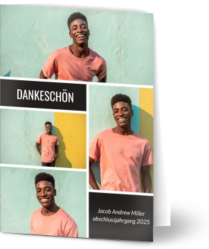 Die Schule abzuschließen ist es ein wichtiger Punkt im Leben Ihres Kindes. Alle feiern mit. Nach der Feier, möchten Sie sich bei allen Gästen bedanken. Wenn Sie eigenen Ideen haben oder etwas Besonderes ihnen sagen möchten, können Sie einfach ein eigenartiges Muster und die eigene Karten erstellen oder eins von unseren Muster aussuchen und bearbeiten. Personalisieren Sie Ihre Abschluss-Dankeskarten mit Ihrer Fotos, Text oder persönlicher Nachricht. Erstellen Sie etwas Einzigartiges mit Optimalprint DE
