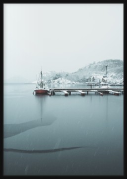 Small Boat At A Snowy Harbor