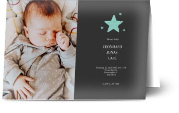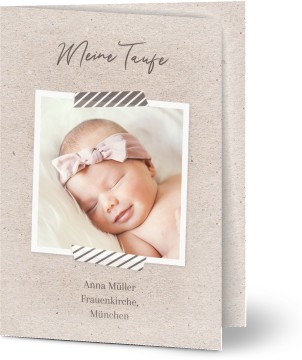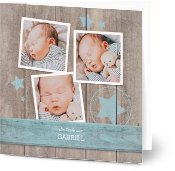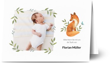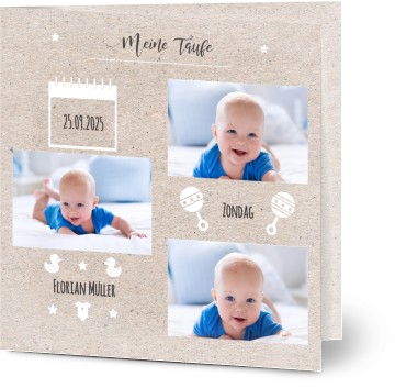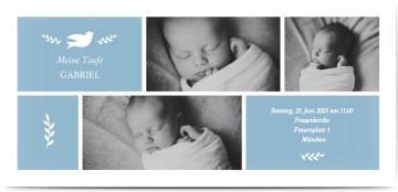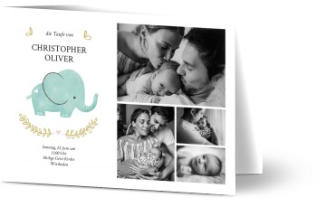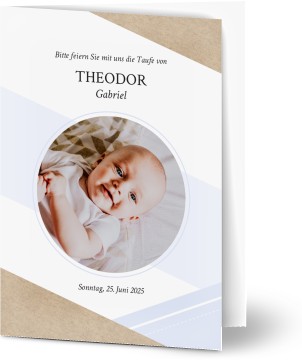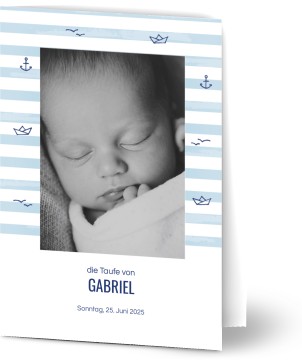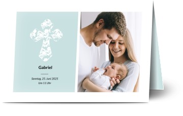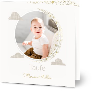 Sobald die Zeit für den großen Tag gekommen ist, gestalten Sie anhand einer unserer vielen Vorlagen Taufkarten für Ihren Sohn. Bei uns finden Sie die perfekten Worte, Layouts und Vorlagen anhand derer sich einfach perfekte Einladungskarten zur Taufe Ihres Sohns gestalten lassen. Sie können dafür unsere Bilder und Worte sowie Ihre eigenen Fotos und Worte beliebig kombinieren. Unsere Vorlagen für Taufkarten sind vollständig individuell anpassbar: Sie können alle Textelemente und alles außer Hintergrundbildern entfernen und anschließend Fotos, Bilder und Text an beliebigen Stellen einfügen. Die Online-Werkzeuge sind großartig, denn mit ihnen können Sie Karten zur Taufe eines Jungens erstellen die Erinnerungswert haben. Sie schaffen somit ein Andenken an das Ereignis und diese Zeit im Leben des Täuflings. Sobald Sie entschieden haben, was Sie hinzufügen oder was entfernen möchten, können Sie alle jeweiligen Schritte über die Webschnittstelle ausführen. Einmal vorgenommene Änderungen an den Einladungskarten zur Taufe können Sie auch wieder rückgängig machen (etwa falls Sie einen Fehler gemacht haben) und Sie können Ihre Kreativität ausleben. Egal für welches Foto und für welchen Text Sie sich entschieden haben, Sie haben stets die Gewissheit, dass Sie ein Qualitätsprodukt für die Taufe eines Jungens erhalten. Denn all unsere Einladungskarten zur Taufe werden auf Qualitätspapier gedruckt; dadurch wird auch sichergestellt, dass alle von Ihnen verwendeten Fotos optimal auf der Seite wirken. Vertrauen Sie sich uns an, wenn es um die Qualität Ihrer Taufeinladungen an diesem so wichtigen Tag im Leben Ihres Sohnes geht.